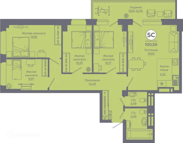 5 комн. квартира в Ростове-на-Дону в ипотеку от 92 808 руб/месяц