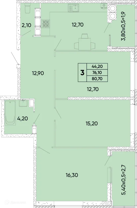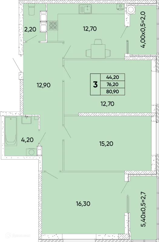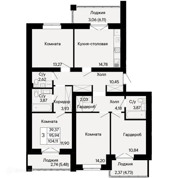 3 комн. квартира в Ростове-на-Дону в ипотеку от 68 625 руб/месяц
