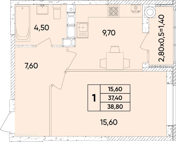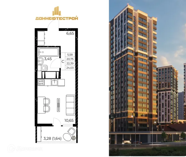 1 комн. квартира в Ростове-на-Дону в ипотеку от 40 224 руб/месяц