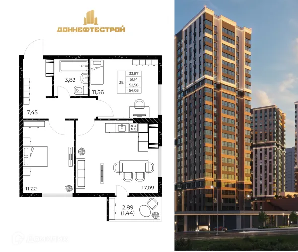 1 комн. квартира в Ростове-на-Дону в ипотеку от 52 540 руб/месяц