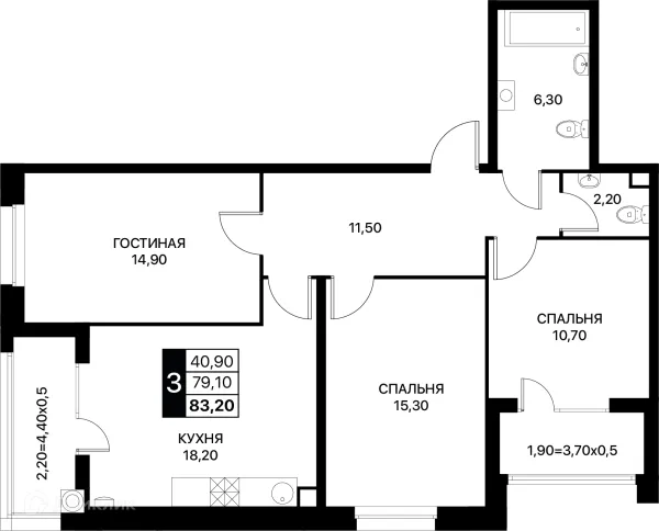 3 комн. квартира в Ростове-на-Дону в ипотеку от 79 773 руб/месяц