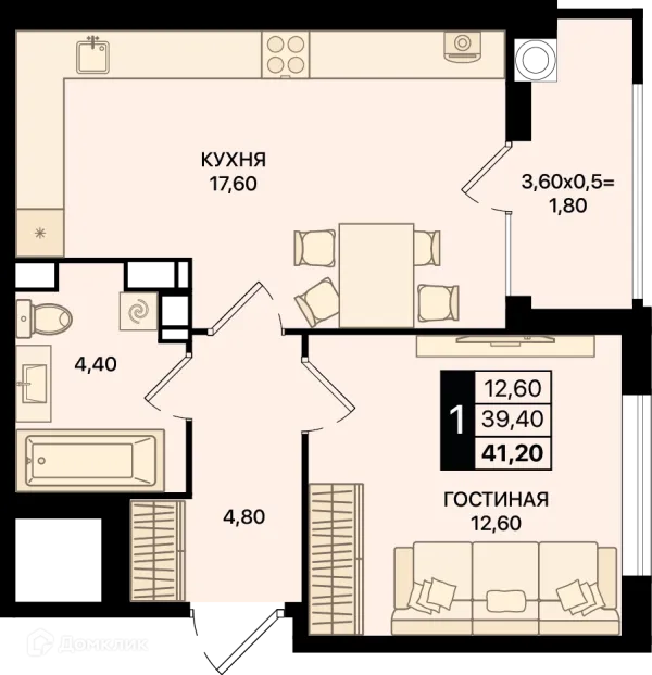 1 комн. квартира в Ростове-на-Дону в ипотеку от 40 289 руб/месяц