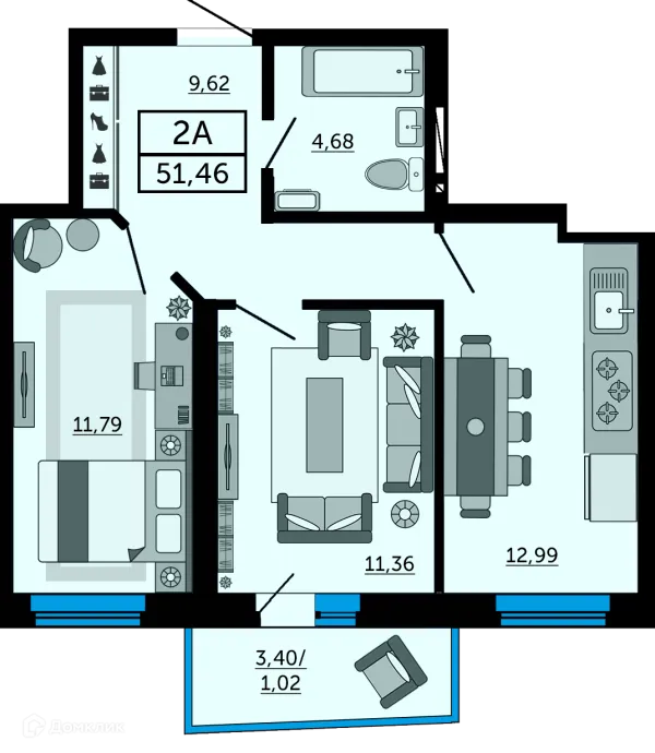 2 комн. квартира в Ростове-на-Дону в ипотеку от 53 820 руб/месяц