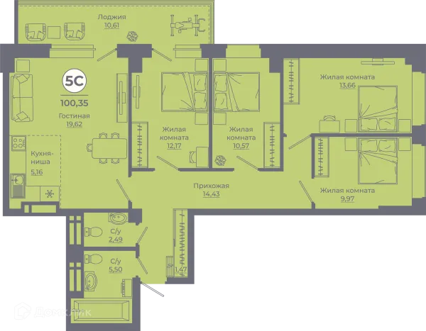 5 комн. квартира в Ростове-на-Дону в ипотеку от 92 689 руб/месяц