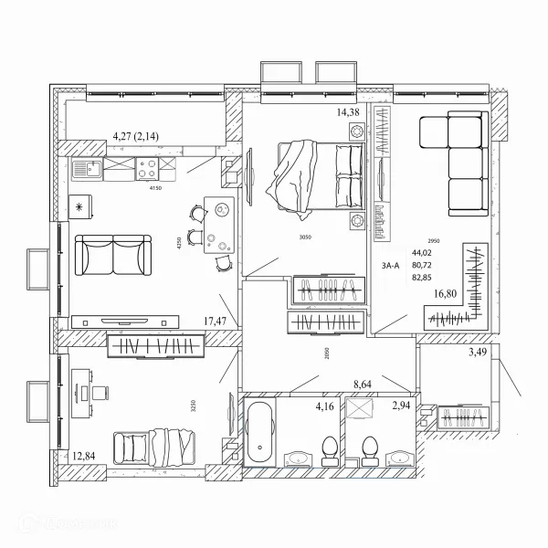 3 комн. квартира в Ростове-на-Дону в ипотеку от 84 994 руб/месяц