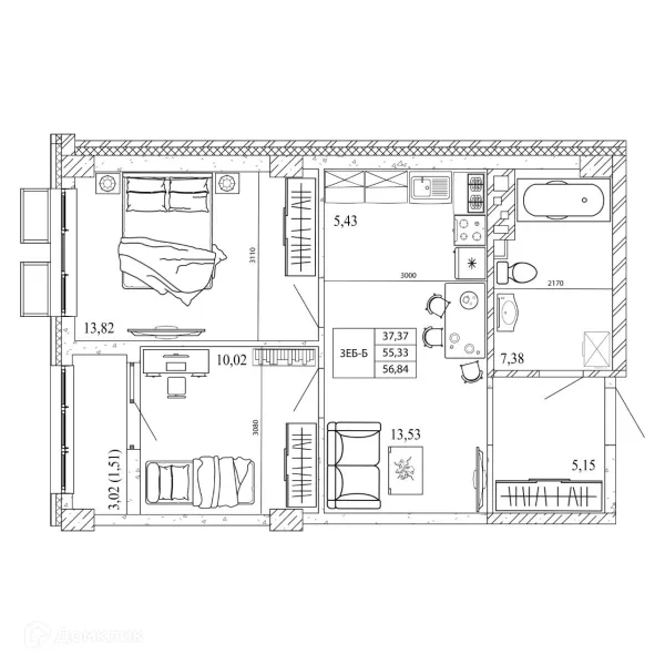 3 комн. квартира в Ростове-на-Дону в ипотеку от 67 401 руб/месяц