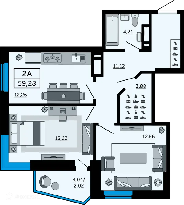 2 комн. квартира в Ростове-на-Дону в ипотеку от 57 783 руб/месяц