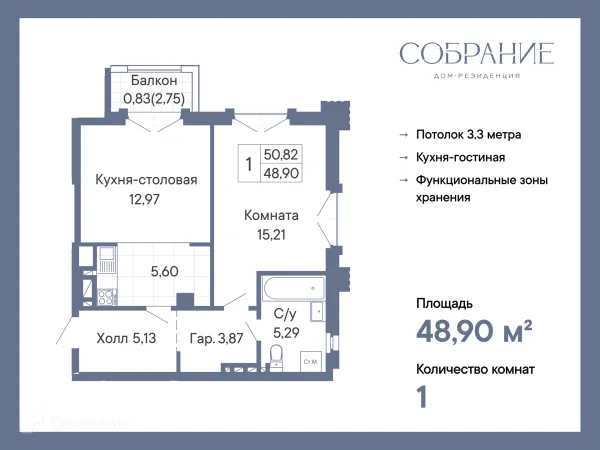 1 комн. квартира в Ростове-на-Дону в ипотеку от 49 555 руб/месяц