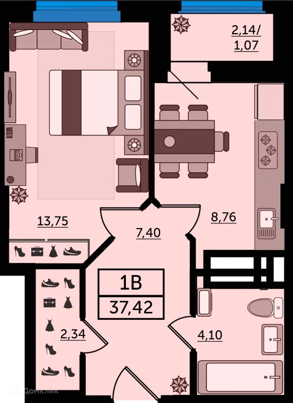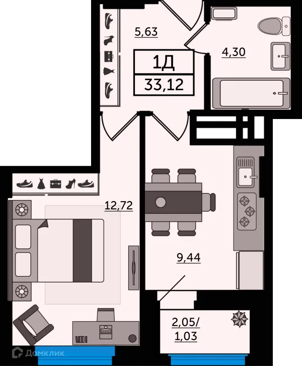 1 комн. квартира в Ростове-на-Дону в ипотеку от 32 197 руб/месяц