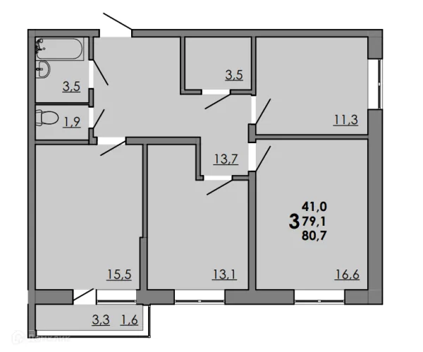 3 комн. квартира в Ростове-на-Дону в ипотеку от 56 261 руб/месяц