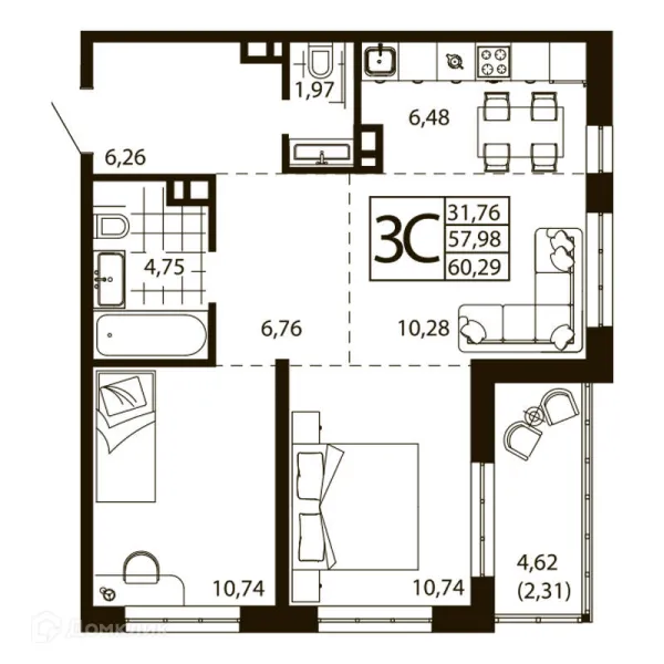 2 комн. квартира в Ростове-на-Дону в ипотеку от 54 379 руб/месяц