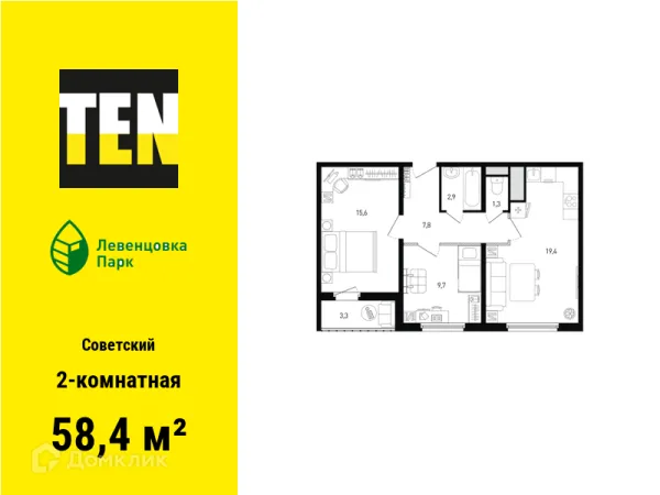 2 комн. квартира в Ростове-на-Дону в ипотеку от 39 961 руб/месяц