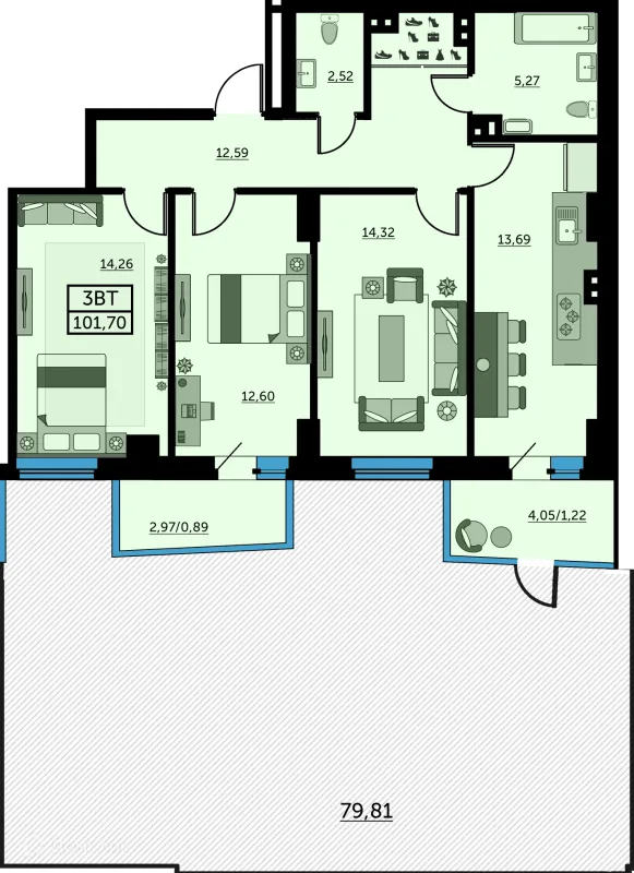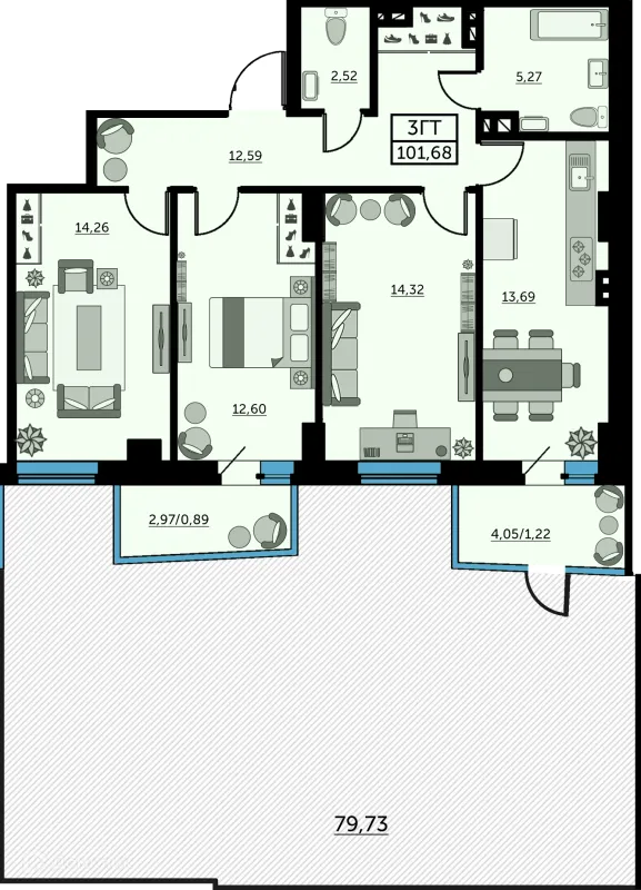 3 комн. квартира в Ростове-на-Дону в ипотеку от 80 557 руб/месяц