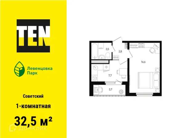 1 комн. квартира в Ростове-на-Дону в ипотеку от 41 259 руб/месяц