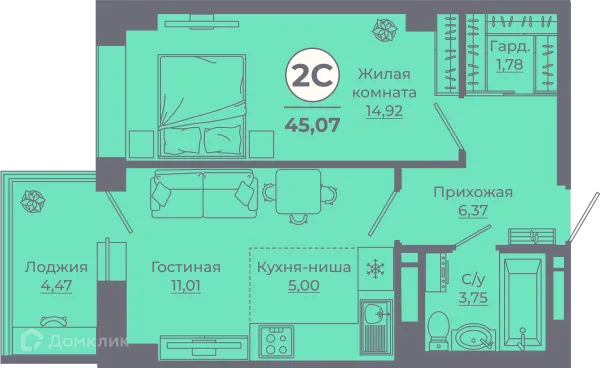 1 комн. квартира в Ростове-на-Дону в ипотеку от 37 294 руб/месяц