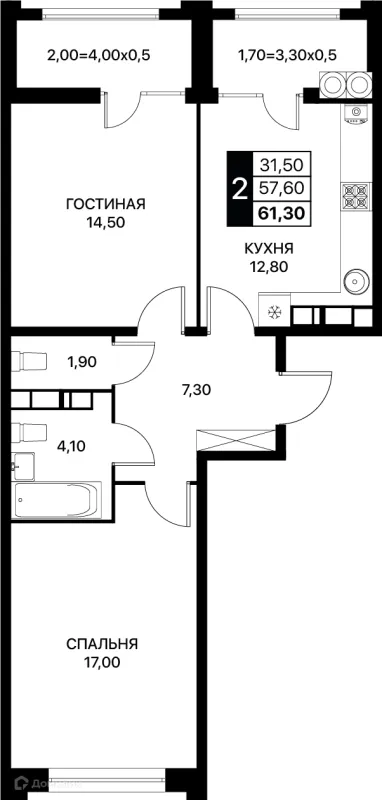 2 комн. квартира в Ростове-на-Дону в ипотеку от 48 574 руб/месяц