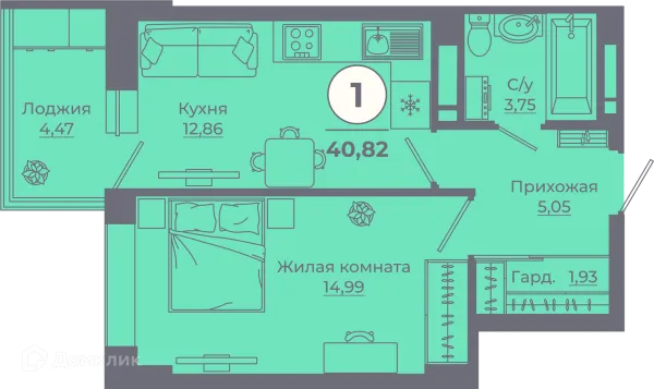 1 комн. квартира в Ростове-на-Дону в ипотеку от 38 322 руб/месяц
