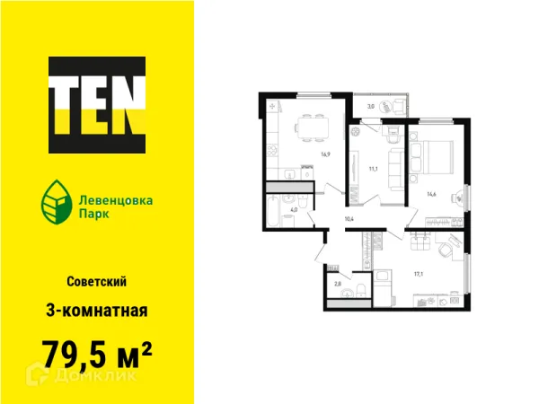 3 комн. квартира в Ростове-на-Дону в ипотеку от 74 657 руб/месяц