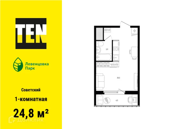 1 комн. квартира в Ростове-на-Дону в ипотеку от 24 799 руб/месяц