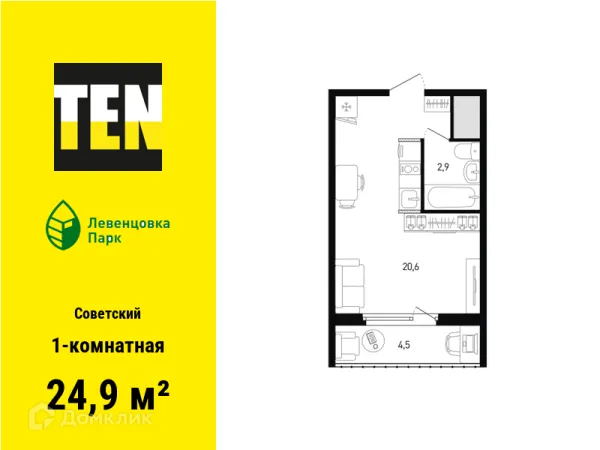 1 комн. квартира в Ростове-на-Дону в ипотеку от 24 930 руб/месяц