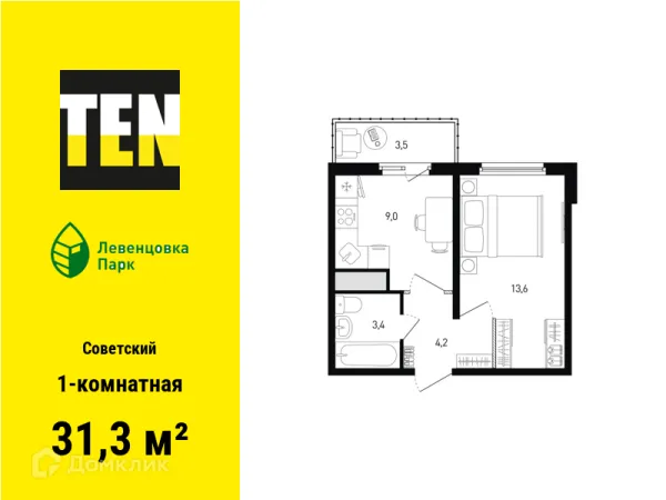 1 комн. квартира в Ростове-на-Дону в ипотеку от 28 288 руб/месяц