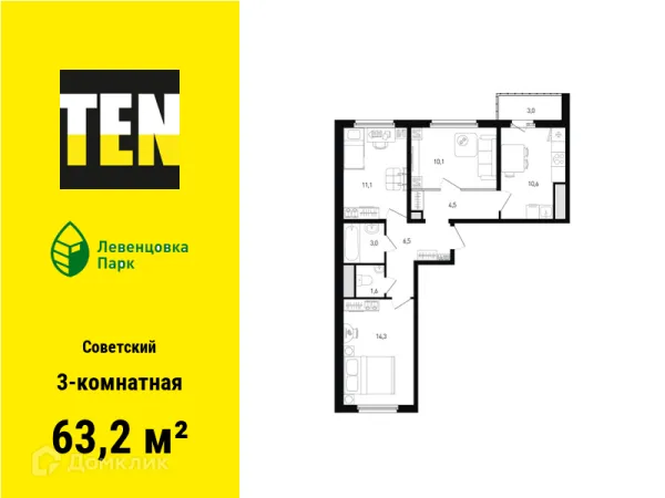3 комн. квартира в Ростове-на-Дону в ипотеку от 66 945 руб/месяц
