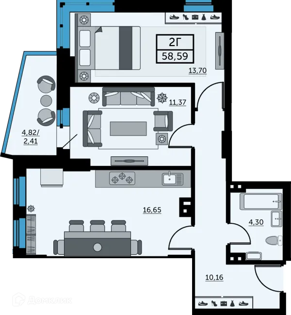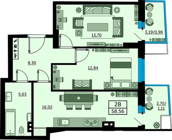 2 комн. квартира в Ростове-на-Дону в ипотеку от 58 079 руб/месяц