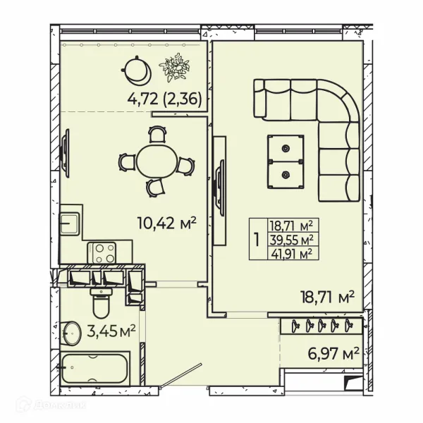 1 комн. квартира в Ростове-на-Дону в ипотеку от 42 403 руб/месяц