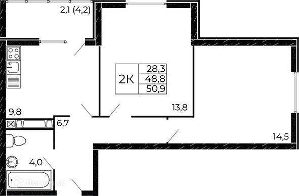 2 комн. квартира в Ростове-на-Дону в ипотеку от 57 978 руб/месяц