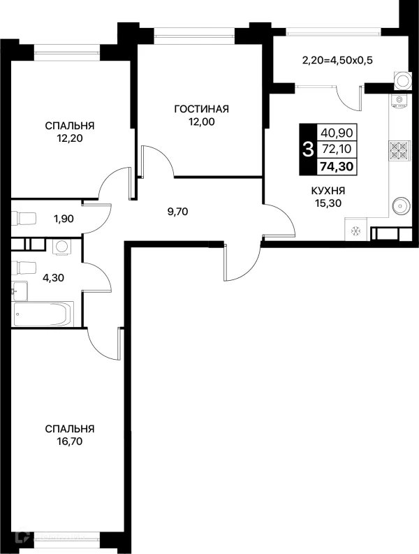 3 комн. квартира в Ростове-на-Дону в ипотеку от 76 750 руб/месяц
