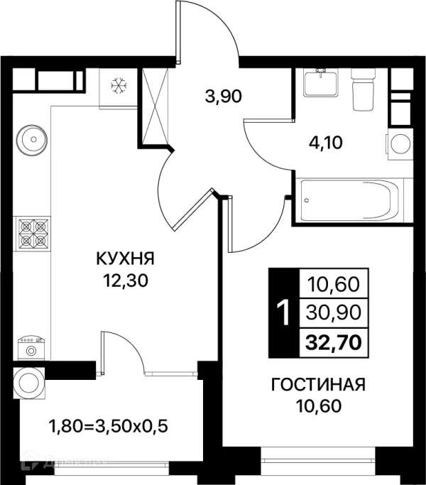 1 комн. квартира в Ростове-на-Дону в ипотеку от 39 524 руб/месяц