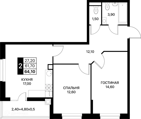 2 комн. квартира в Ростове-на-Дону в ипотеку от 60 879 руб/месяц