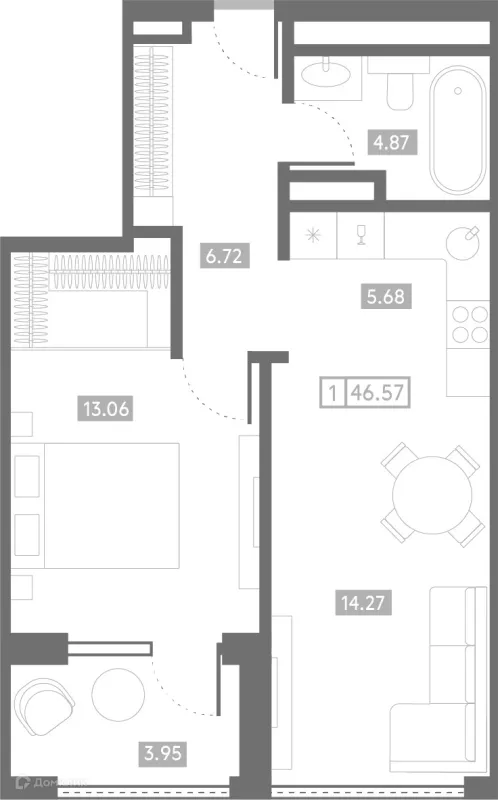 1 комн. квартира в Ростове-на-Дону в ипотеку от 57 469 руб/месяц