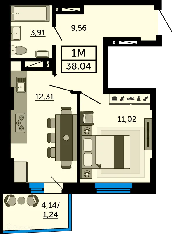 1 комн. квартира в Ростове-на-Дону в ипотеку от 36 789 руб/месяц
