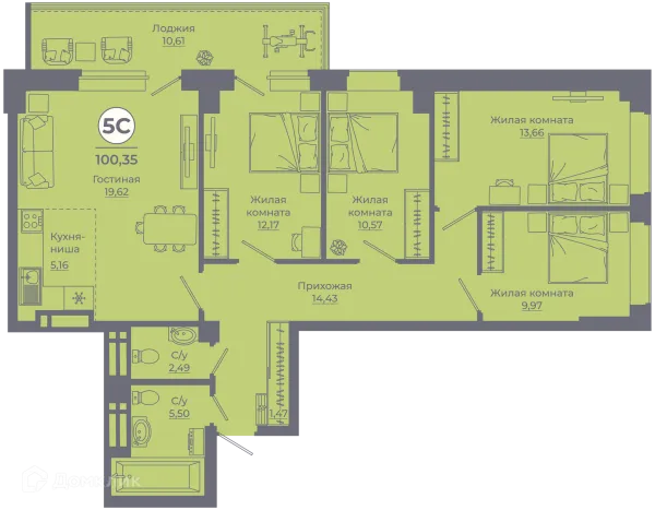 5 комн. квартира в Ростове-на-Дону в ипотеку от 92 707 руб/месяц