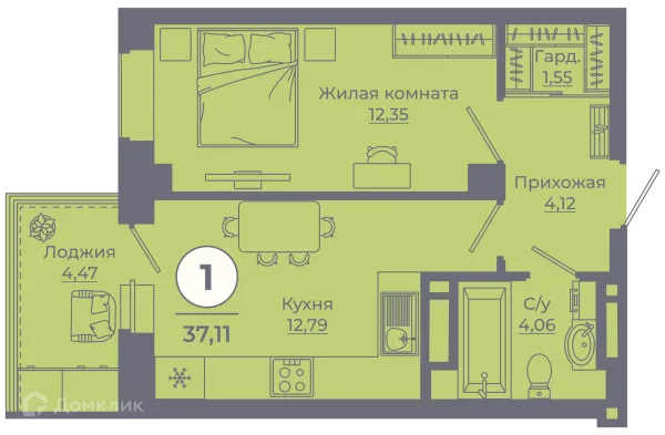 1 комн. квартира в Ростове-на-Дону в ипотеку от 34 100 руб/месяц