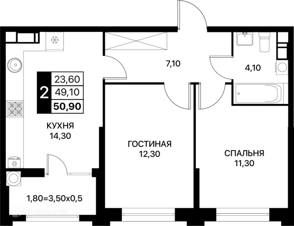 2 комн. квартира в Ростове-на-Дону в ипотеку от 57 710 руб/месяц