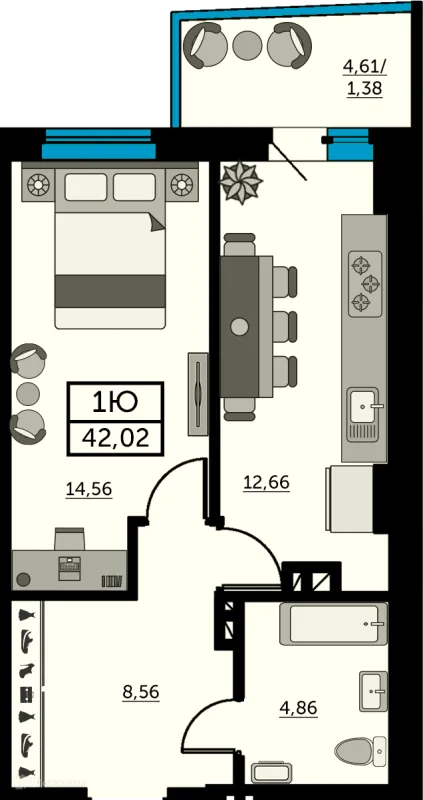1 комн. квартира в Ростове-на-Дону в ипотеку от 42 789 руб/месяц