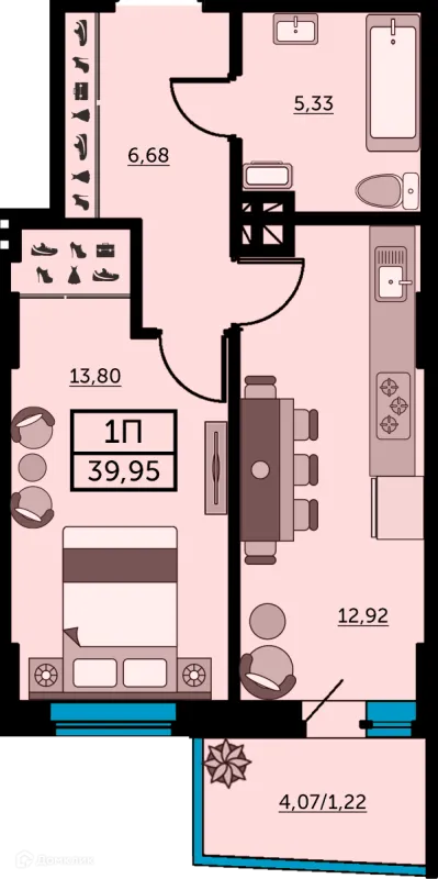 1 комн. квартира в Ростове-на-Дону в ипотеку от 42 622 руб/месяц