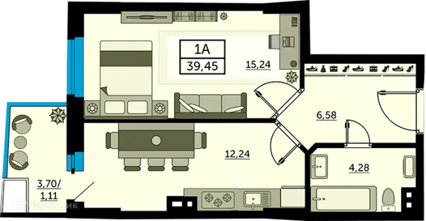 1 комн. квартира в Ростове-на-Дону в ипотеку от 17 624 руб/месяц