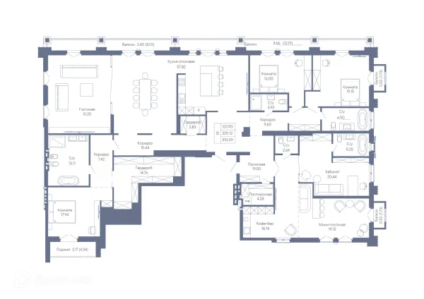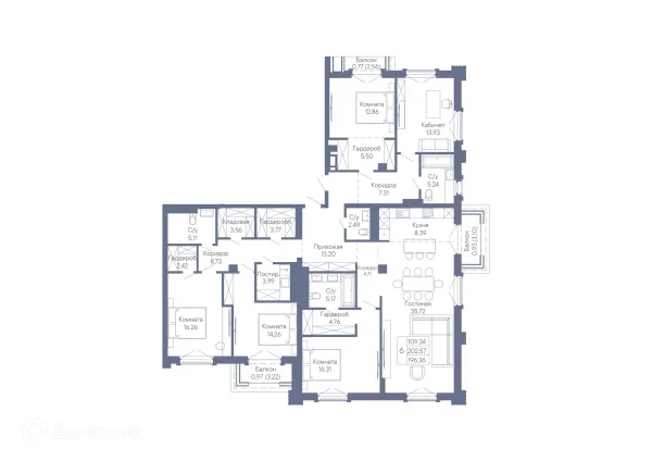 6 комн. квартира в Ростове-на-Дону в ипотеку от 961 513 руб/месяц