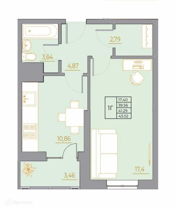 1 комн. квартира в Ростове-на-Дону в ипотеку от 43 450 руб/месяц