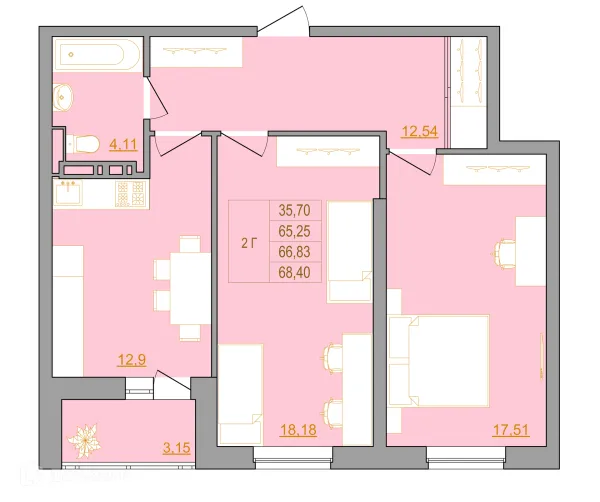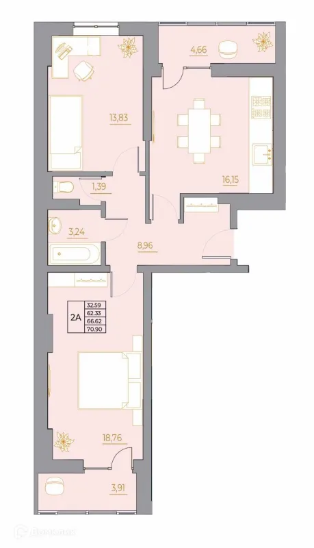 2 комн. квартира в Ростове-на-Дону в ипотеку от 56 968 руб/месяц