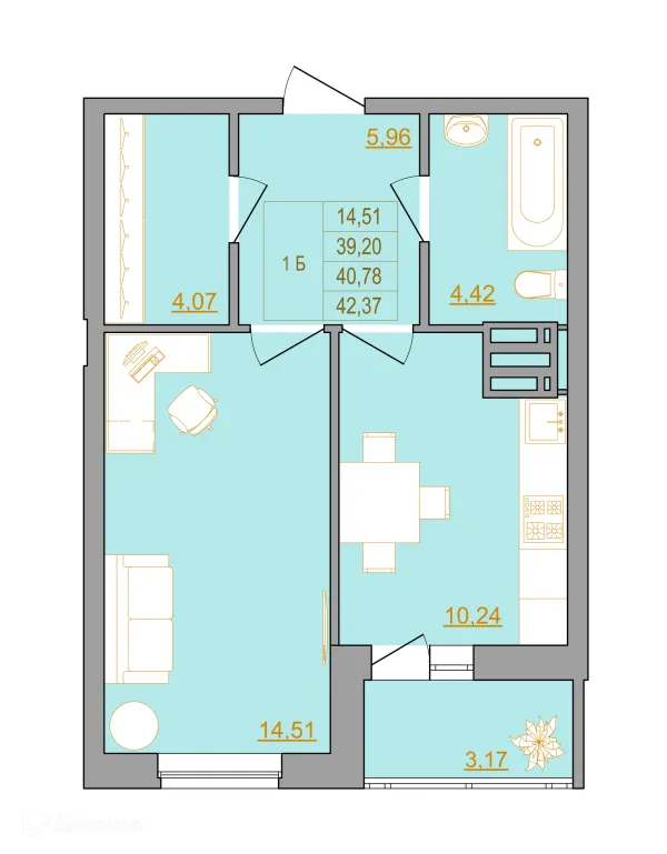 1 комн. квартира в Ростове-на-Дону в ипотеку от 45 228 руб/месяц