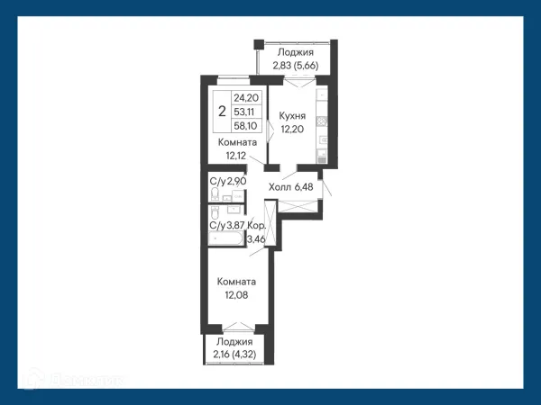 2 комн. квартира в Ростове-на-Дону в ипотеку от 79 637 руб/месяц