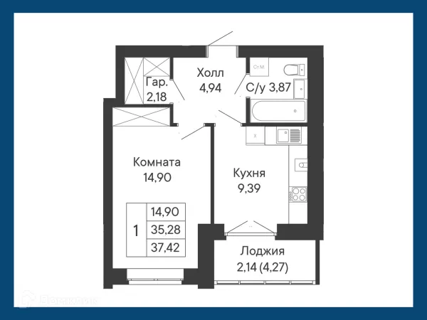 1 комн. квартира в Ростове-на-Дону в ипотеку от 56 374 руб/месяц